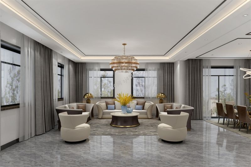 湾海墅简欧风格350平米别墅装修案例风效果图