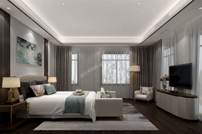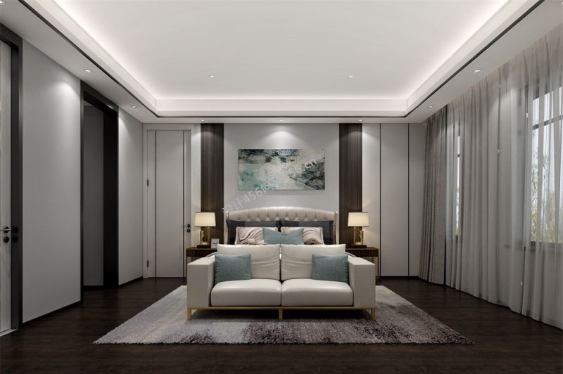 简欧风格350平别墅卧室背景墙装修设计效果图