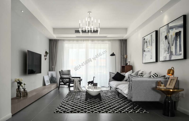 伟东尚城北欧风格117平米三居室装修案例风效果图