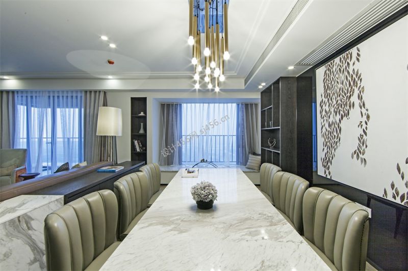 鲁商蓝岸丽舍新中式风格235平米别墅装修案例风效果图