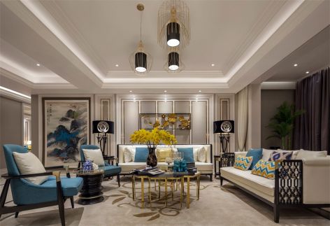 鲁商蓝岸丽舍新中式风格235平米别墅装修案例风效果图