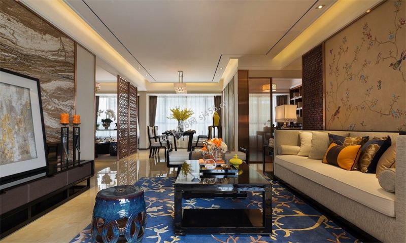 鲁商蓝岸丽舍新中式风格235平米别墅装修案例风效果图