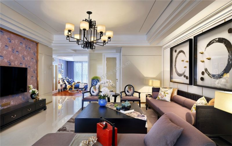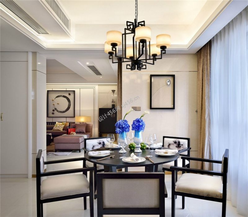 奥克斯广场新中式风格124平米三居室装修案例风效果图