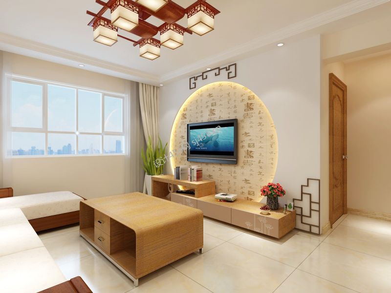 新中式风格三居室124平客厅电视背景墙装修设计图