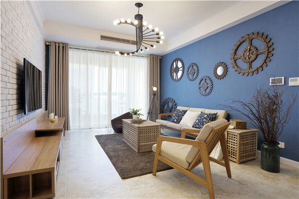 [青岛百家宜装饰]105平米地中海风格装修设计,客厅装饰亮了!