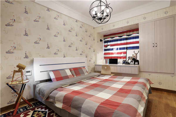 床的两边摆放一样大同款式的壁灯,点缀了整体空间,让空间看起来更有质感。