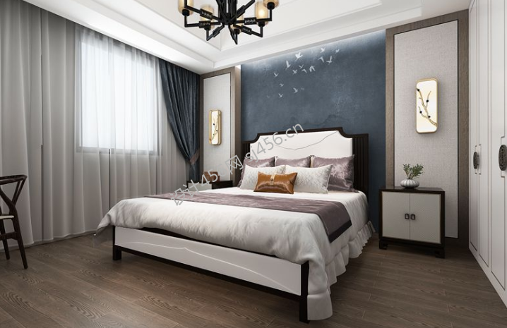 240平新中式风格卧室装修实景图