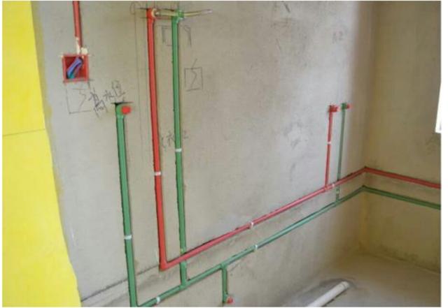 7、供水管道布局走向要合理,不得交叉、斜走,布管不能破坏防水层,在墙体内尽量少用连接配件,供水管出口一定要预埋在地柜背后的墙体内,在柜内应看不到管体,水表安装后,应便于读数及维修,龙头的安装也应便于维修及更换。