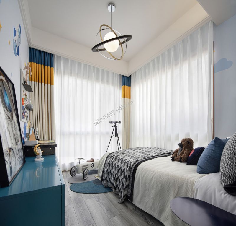 现代风格137平米四室两厅卧室窗帘装修效果图