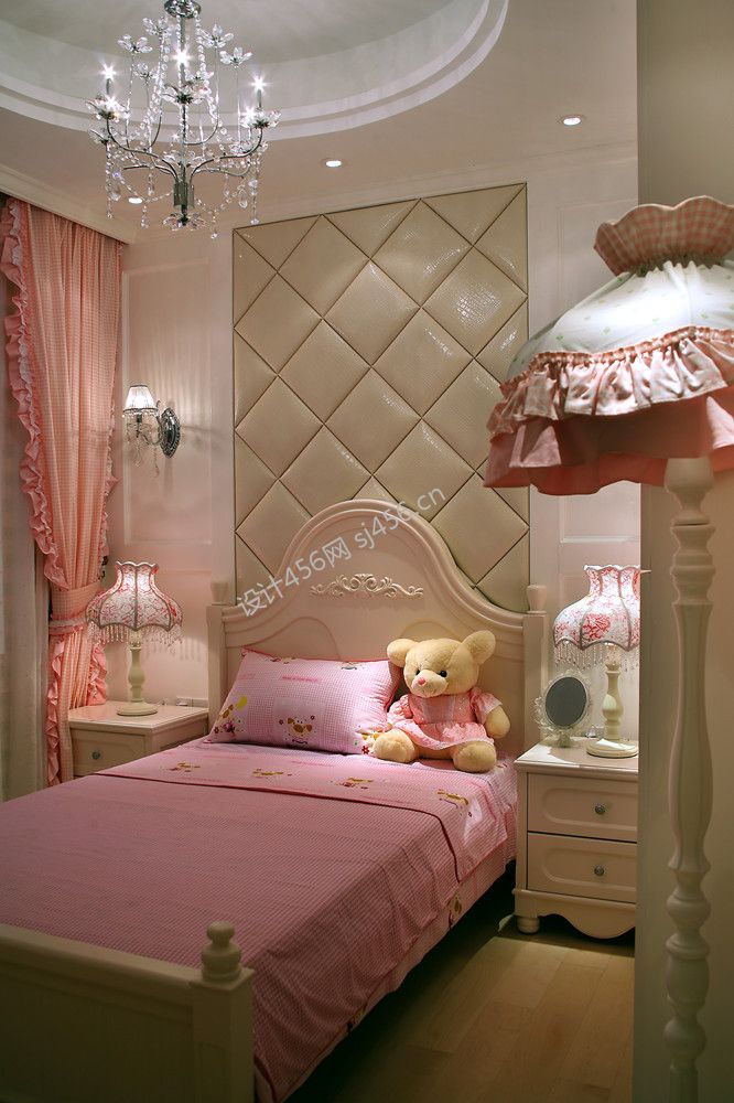 欧式风格123平米三室两厅卧室吊灯装修效果图
