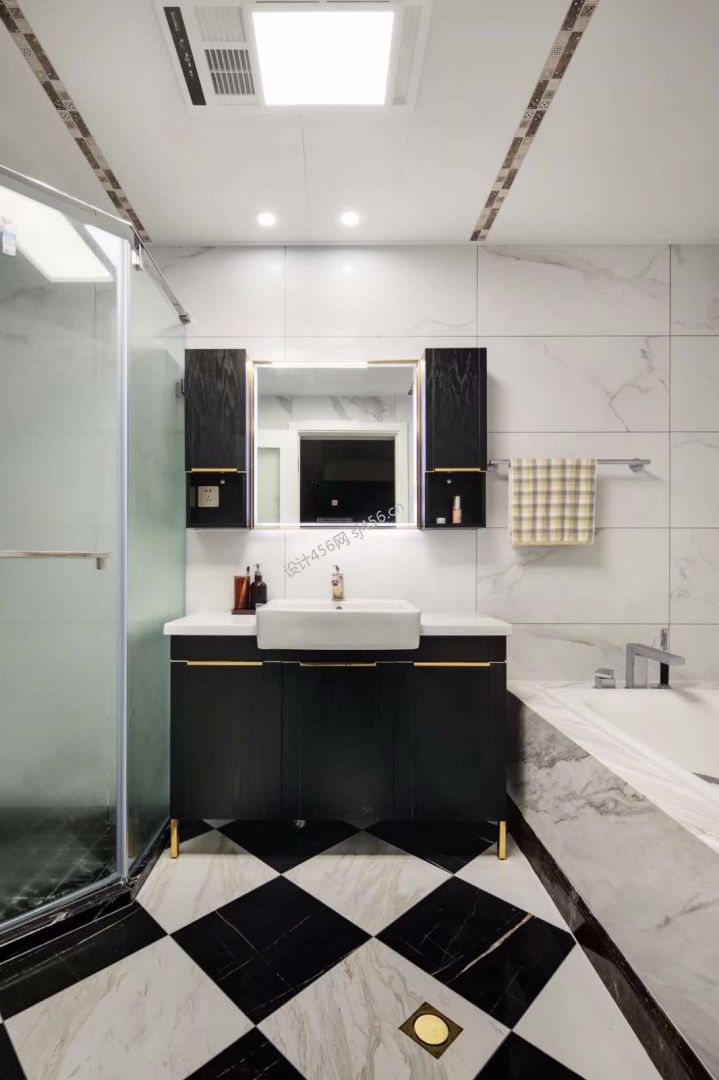 现代简约风96平卫生间地板家装效果图
