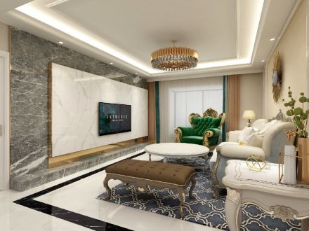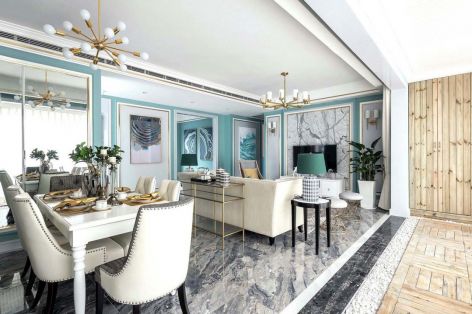 京海成鹿港溪山欧式风格99平装修案例风效果图
