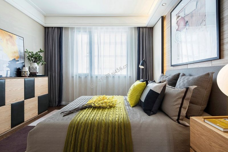 北欧极简风76平卧室窗帘效果图