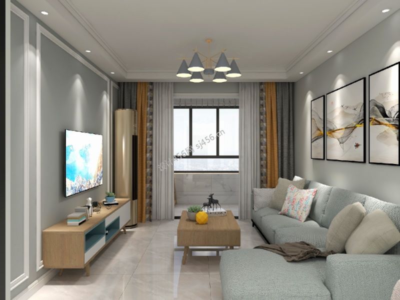 清新薄荷绿现代风格厨房吊柜沙发装修效果图
