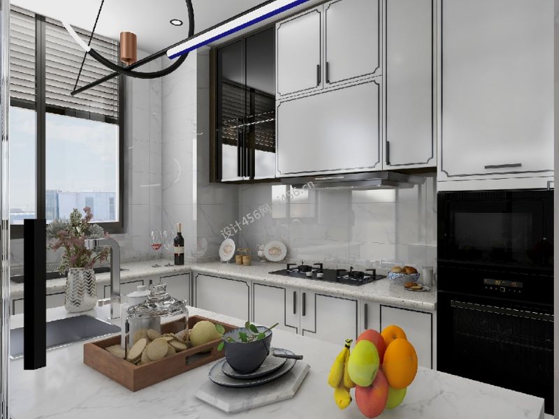 明亮白色现代风格厨房吊柜装修效果图欣赏