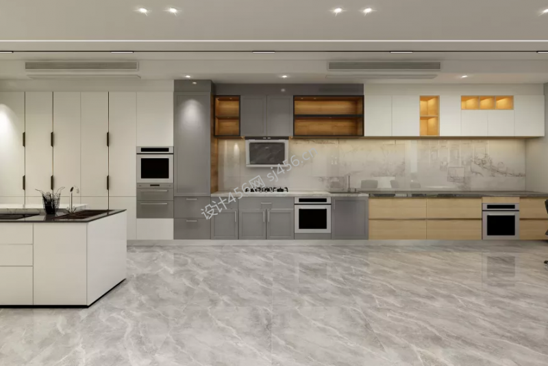 现代简约风格110平厨房地板效果图
