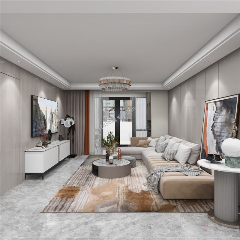 128平三居室现代简约客厅装修效果图