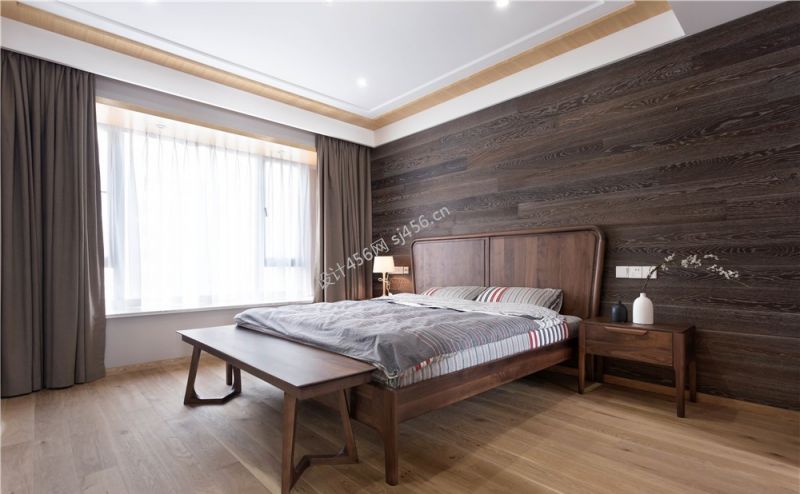 日式风格120平米三居室卧室窗帘装修效果图