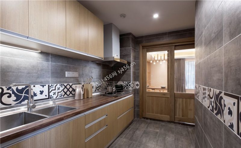 日式风格120平米三居室厨房门装修效果图