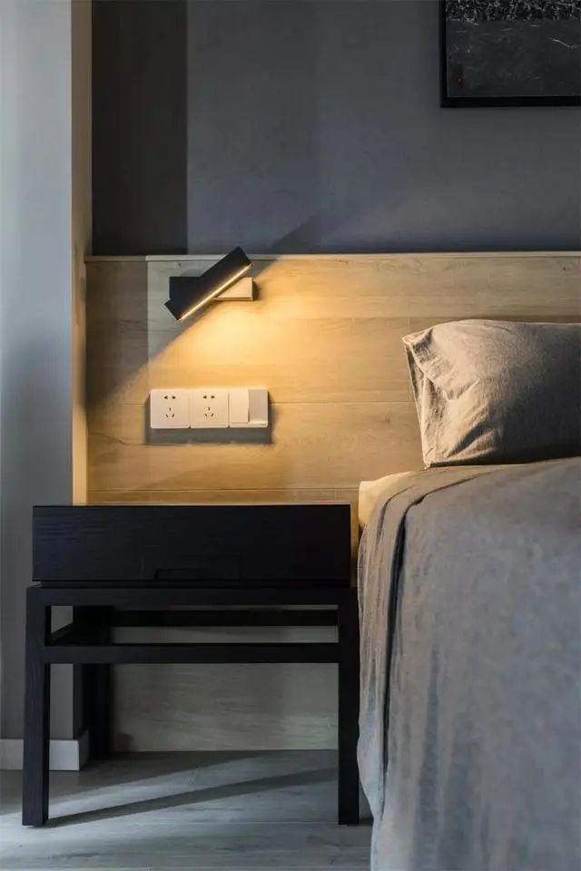 结合木质护墙板两边对称的布置。带来了淡淡的温馨!