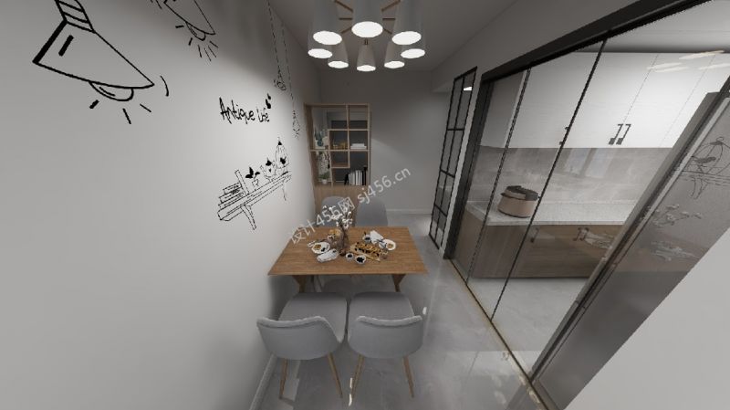 现代简约风格88平米二居室餐厅玻璃门隔断效果图