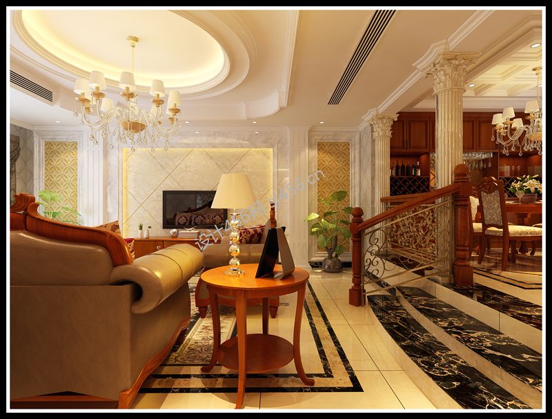350平米欧式风格别墅客厅楼梯装修效果图