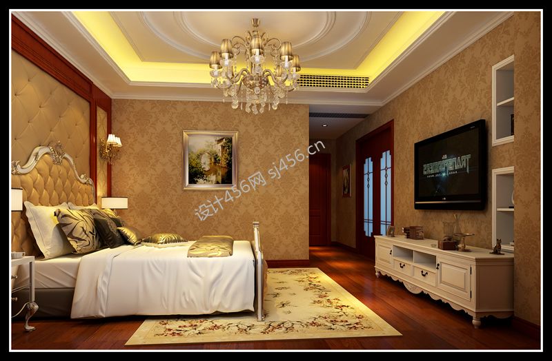 350平米欧式风格别墅卧室电视墙装修效果图