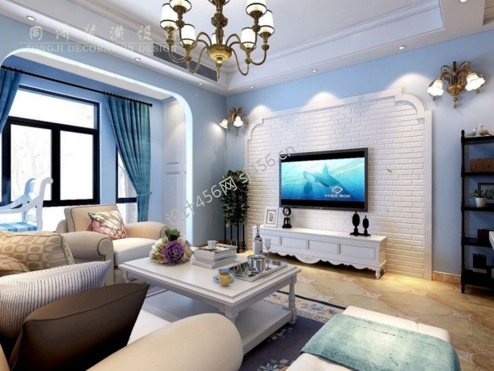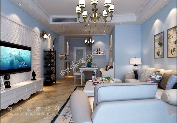 保利天鹅语98平米地中海风格三居室装修案例风效果图