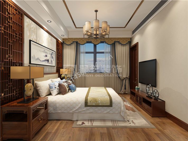 北祥腾麓源278平别墅新中式风格装修案例风效果图