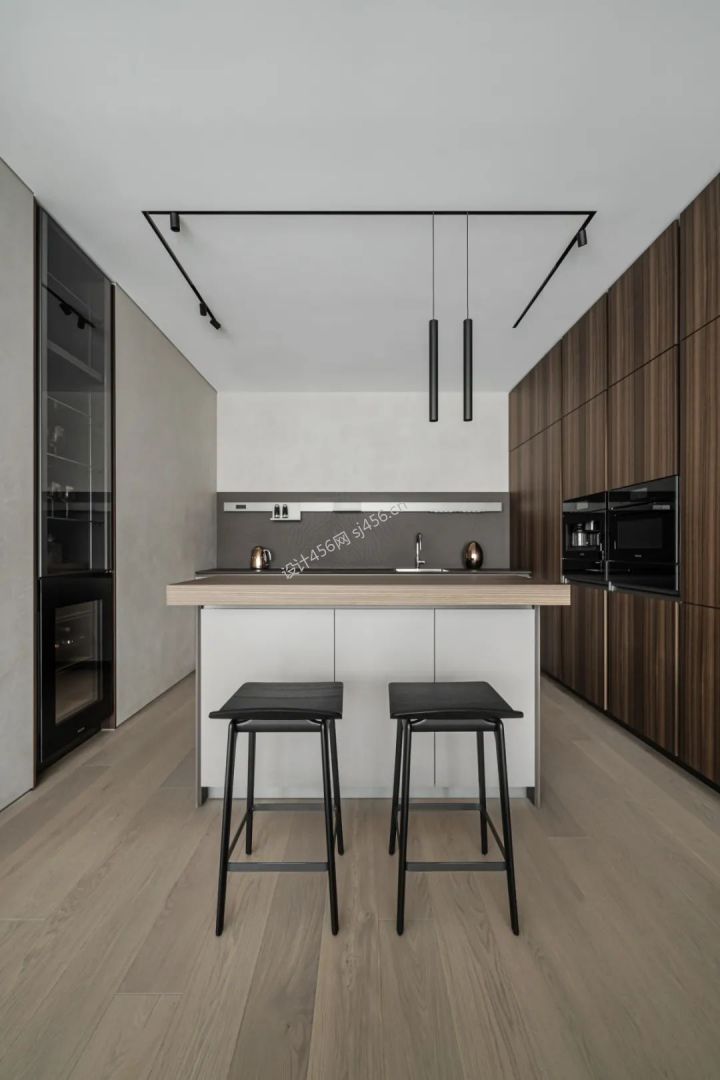 120平米现代轻奢风格三居室厨房吧台装修案例