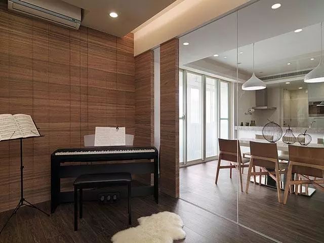 根据业主需求,餐厅背后隔了一块空间作为琴房,这样一个独立的空间,对孩子的发展有很大的好处。
