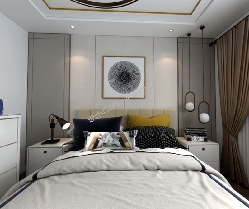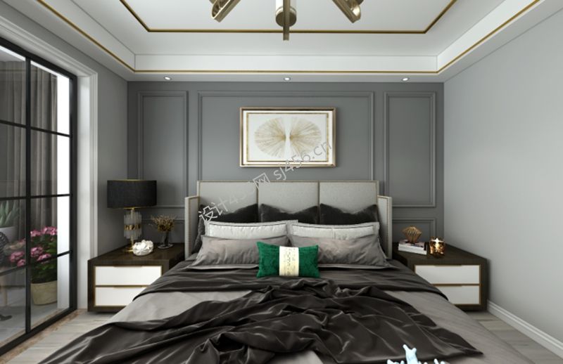 现代轻奢风格129平米三居室卧室背景墙效果图片