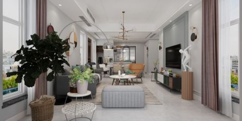 绿地天呈200平米简美风格别墅装修案例风效果图