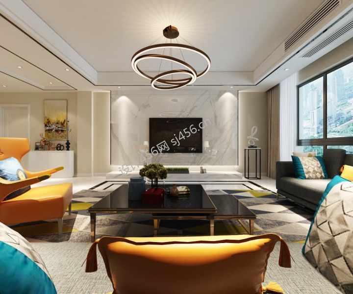 鑫苑花苑110平米现代简约风格三居室装修案例风效果图