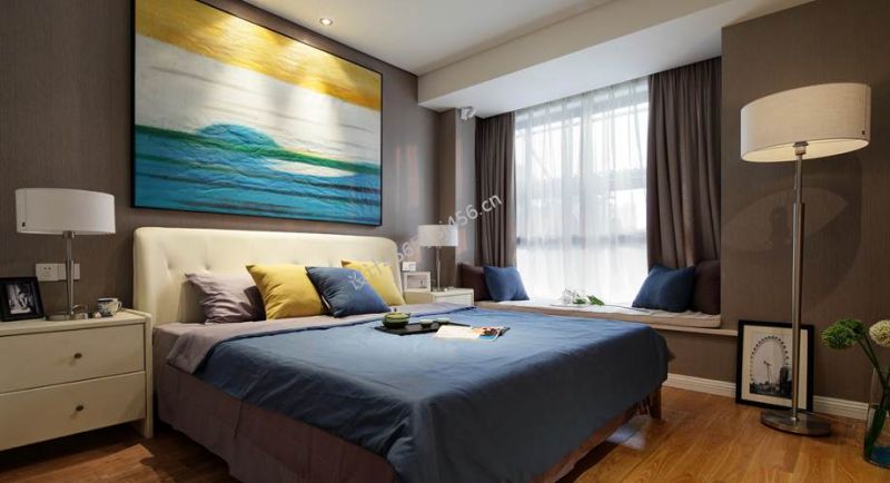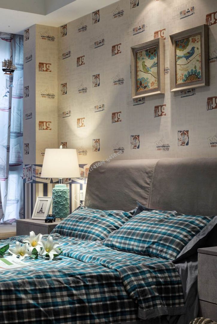 现代简约100平米三居室卧室墙纸装饰装修图片
