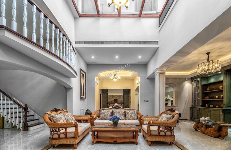 绿地蔷薇九里500平米美式混搭别墅装修案例风效果图