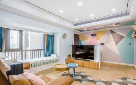 现代风格88平二居室客厅背景墙装修设计效果图