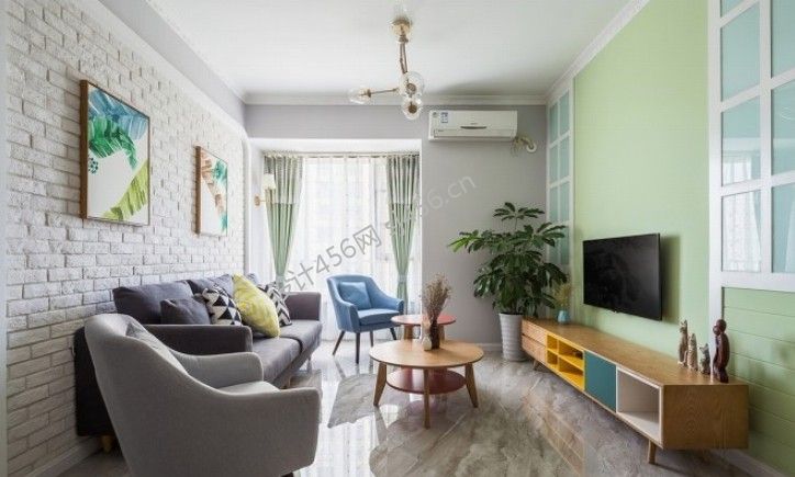 北欧风格96平三居客厅背景墙装修效果图