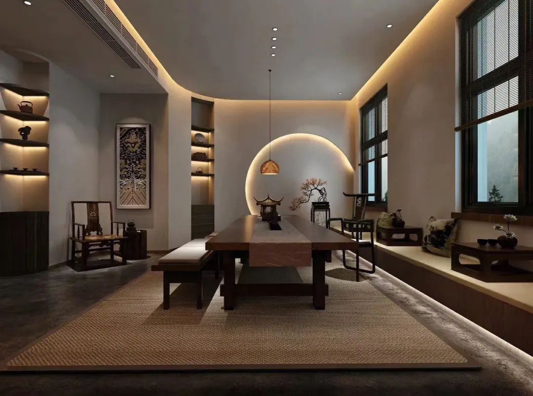 茶楼一般大多数选取的风格是中式或者新中式,新中式墙面材料用白色乳胶漆或者单色壁纸就可以,如果是想体现中式,那么材料就建议用带有古花纹的,或者中式元素的壁纸,地面一般选择木地板,地砖都可以。然后家具、茶台、或者装饰物要去选择红木,紫檀木,楠木等,这样显得很高雅。