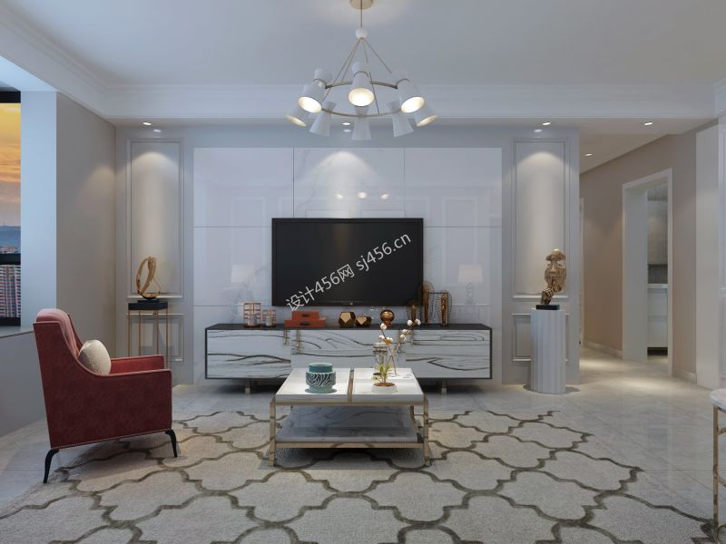 现代轻奢127平米三居室装修案例风效果图