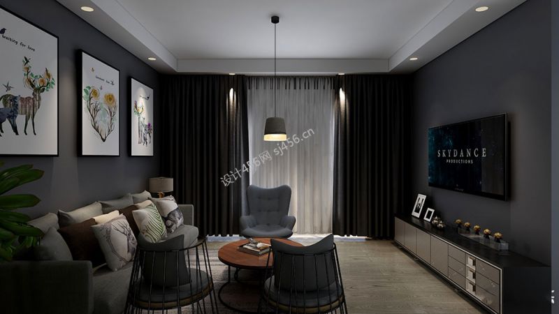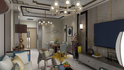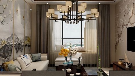 橡树湾新中式风格100平米三居室装修案例风效果图