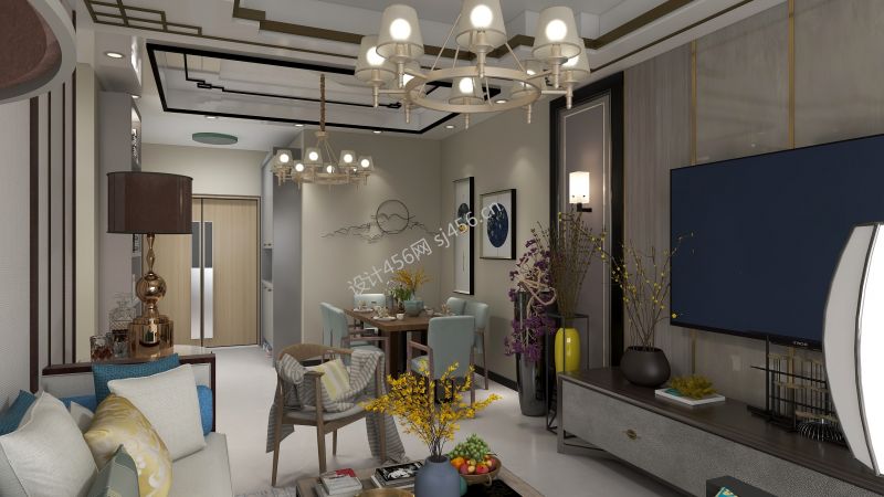 元素视界 橡树湾新中式风格100平米三居室装修案例