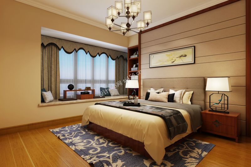 简单中式风格卧室飘窗设计装修效果图片