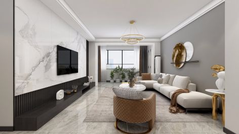 南信愉珑湾140平三居室现代轻奢装修案例风效果图