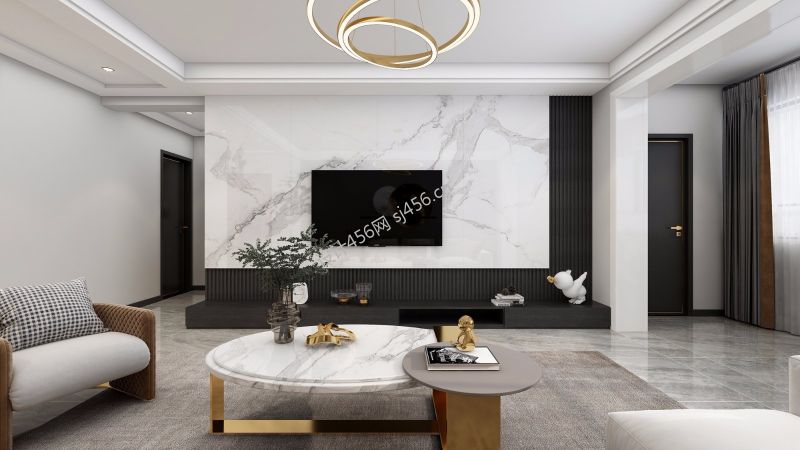 南信愉珑湾140平三居室现代轻奢装修案例风效果图