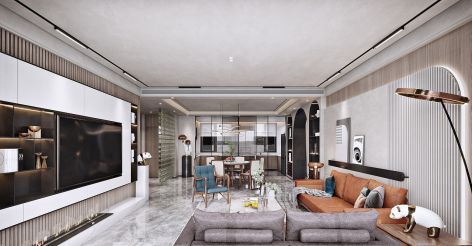 悦海芳成mall120㎡三居室混搭风格装修案例风效果图
