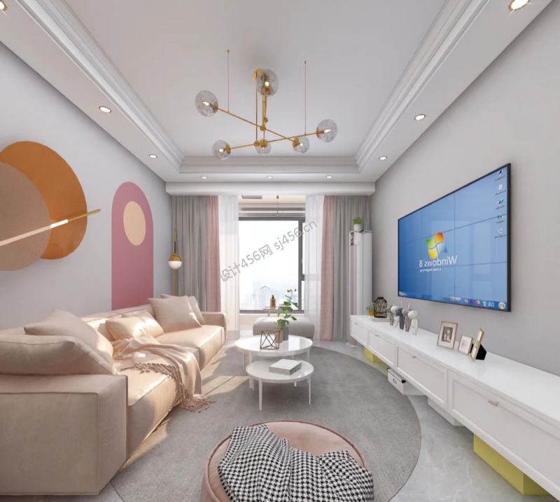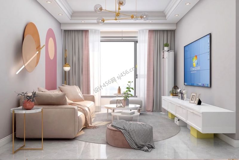 89㎡二居室北欧风格客厅吊顶装修效果图