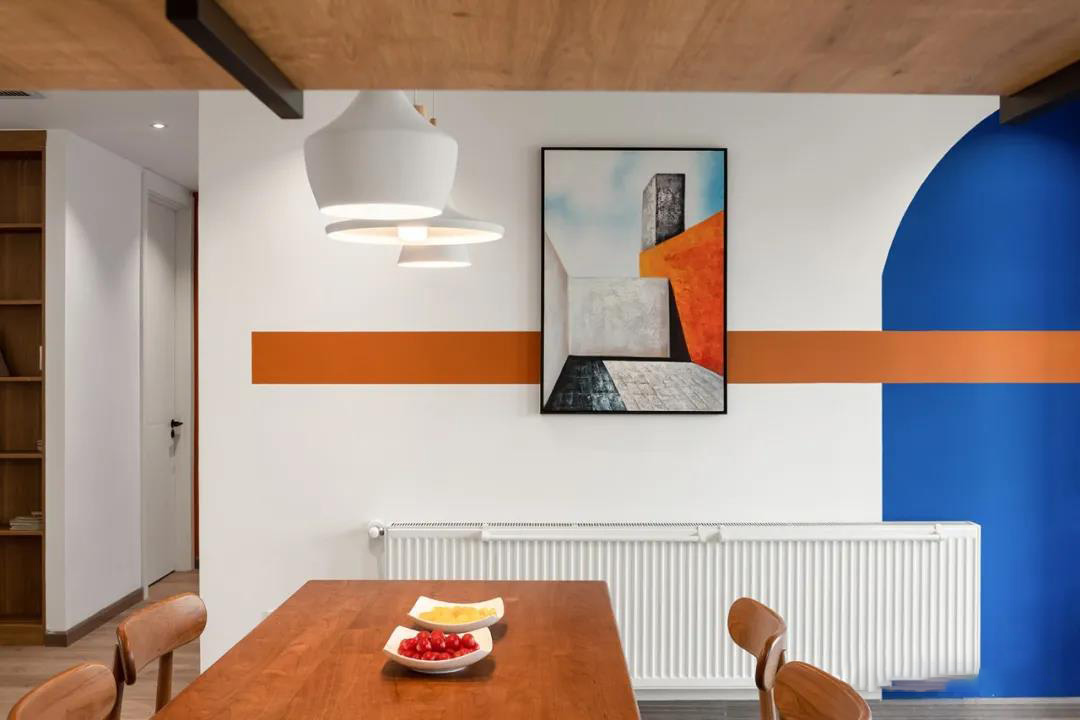 背景墙上运用色块穿插,打造出愉悦的就餐氛围。