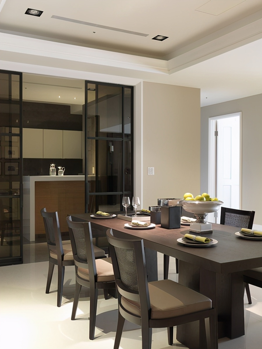 餐厅与厨房相连在一起,让烹饪与美味很好的结,订制的实木餐桌椅,看上去朴实无华,实际凸显出主人对于生活质量的追求和品味,平凡中透露着豪华。