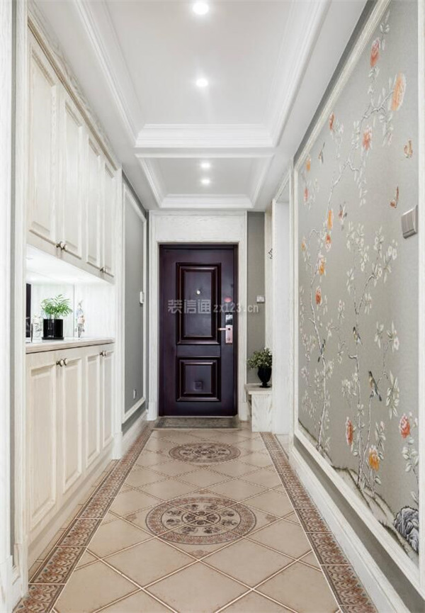 尽管在色彩上有所限制,但也要与整体装饰风格相融,也可以在玄关处稍显个性,颜色跳跃,但总之色彩不要太过沉闷、复杂。
